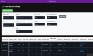 Deux passionnés de tennis voulaient automatiser le calcul de statistiques sur les données de matchs et joueurs, réparties sur plusieurs feuilles Excel. Le projet a démarré simplement, et s’est transformé en une application Node.js complète, avec filtres multi-critères, comparaison de joueurs, import de matches sous format Excel…